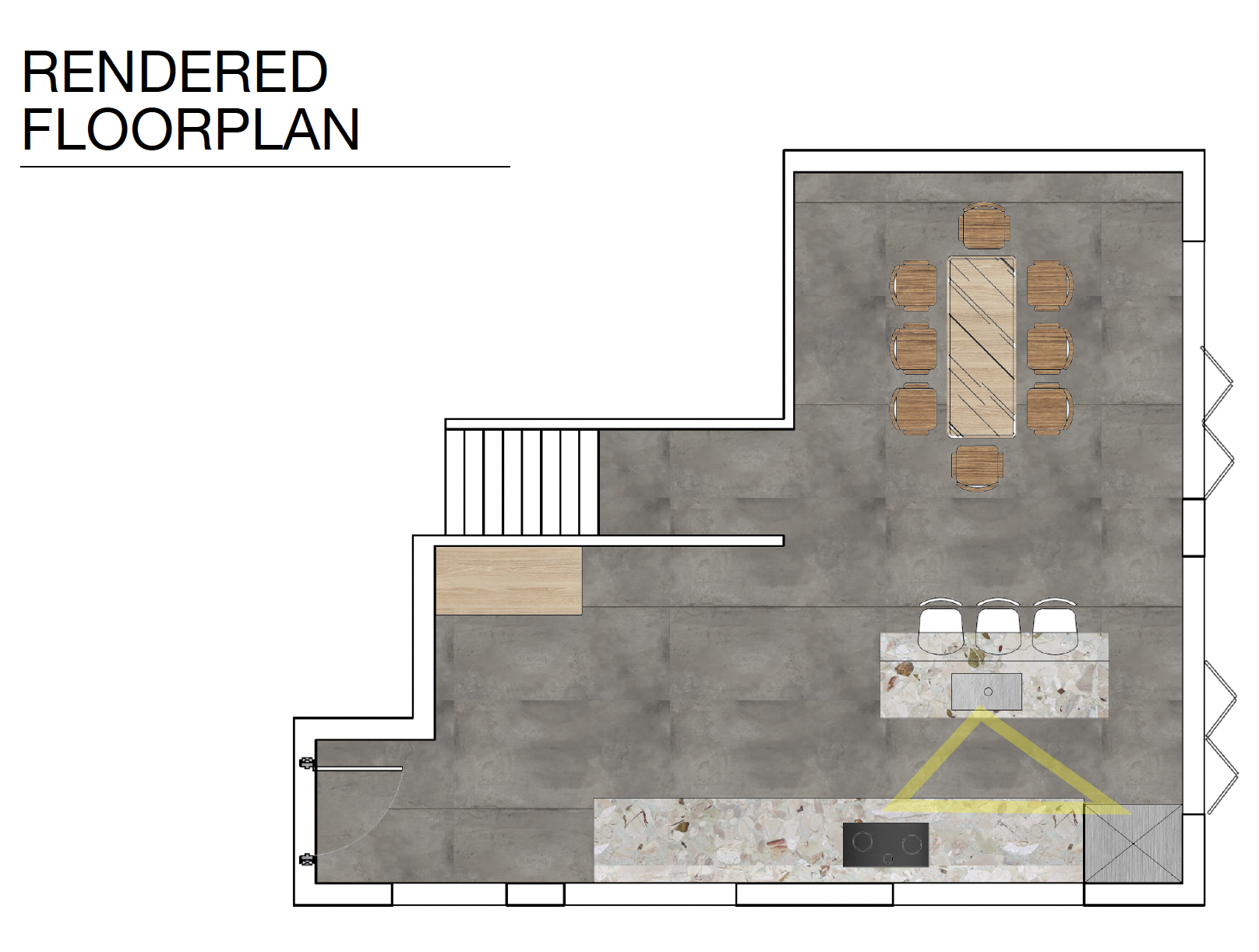 I utilised the working triangle to plan the kitchen flow. The working triangle in kitchen design is made up of three main workstations/appliances. These are the sink, the refrigerator, and the cooker. To create the most optimum work flow to cook in the kitchen I followed this spatial design method